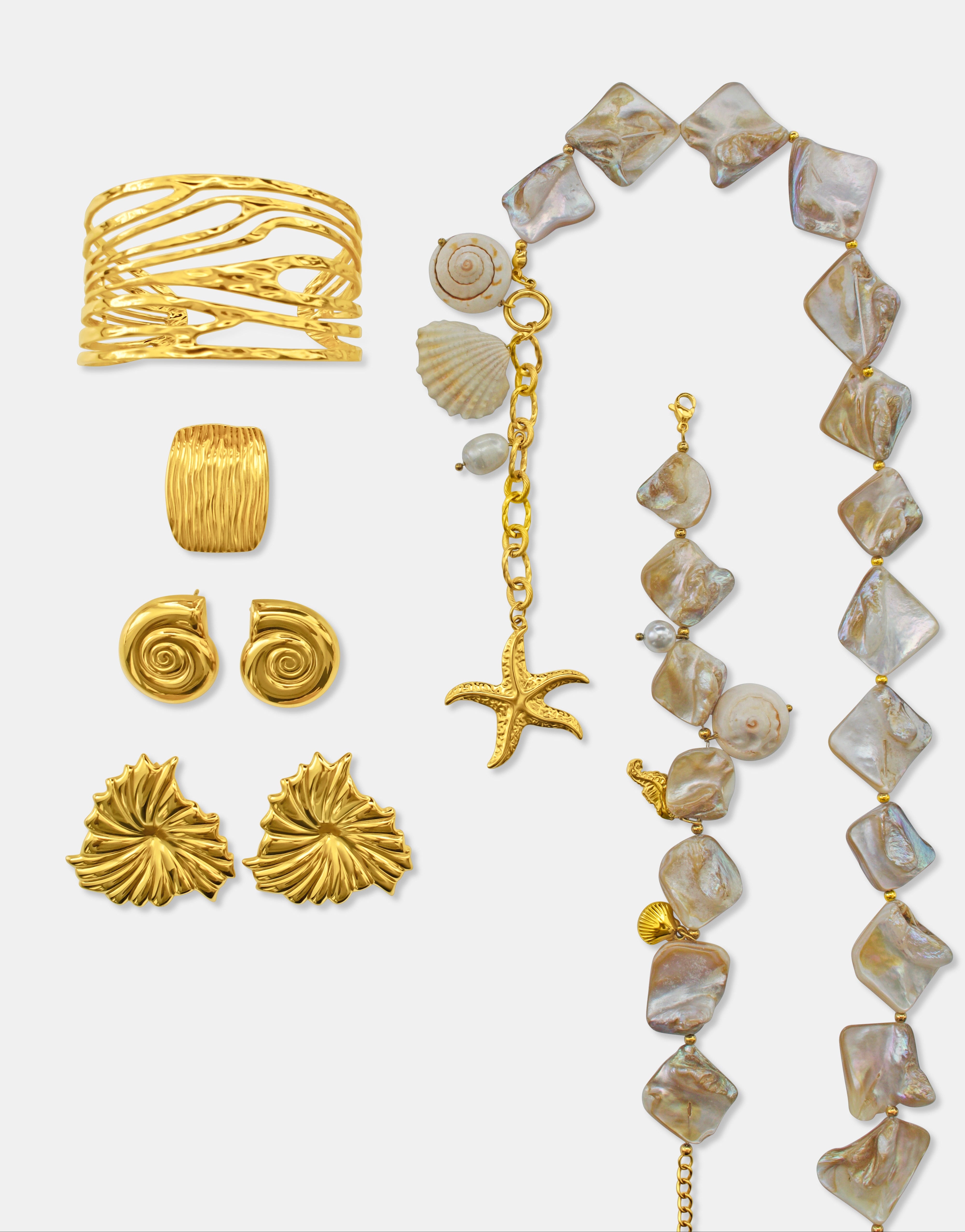 Add a splash of sunshine to your style with the Summer Box Collection! This playful set includes 6 pieces, each beautifully plated in 18k gold for a radiant glow. Perfect for mixing, matching, and brightening up any outfit, these accessories bring effortless charm and a touch of luxury to your summer look. Get ready to shine all season long!